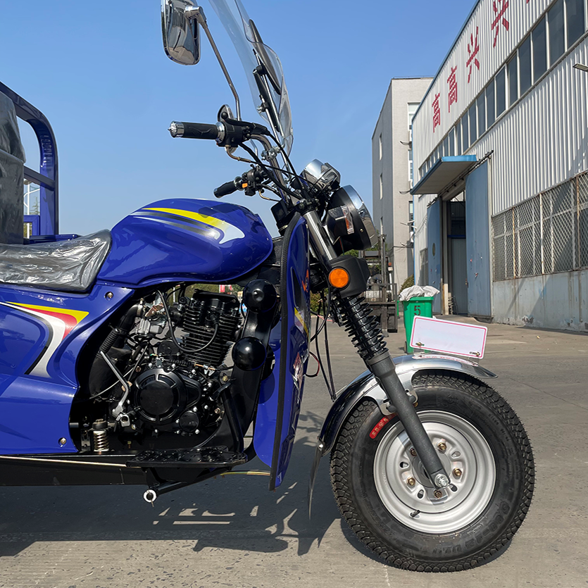 Ressorts verticaux noirs, deux amortisseurs, double tige hydraulique, 200 Hengsheng noir 8 vitesses (cyclomoteur), barre transversale avant intégrée.